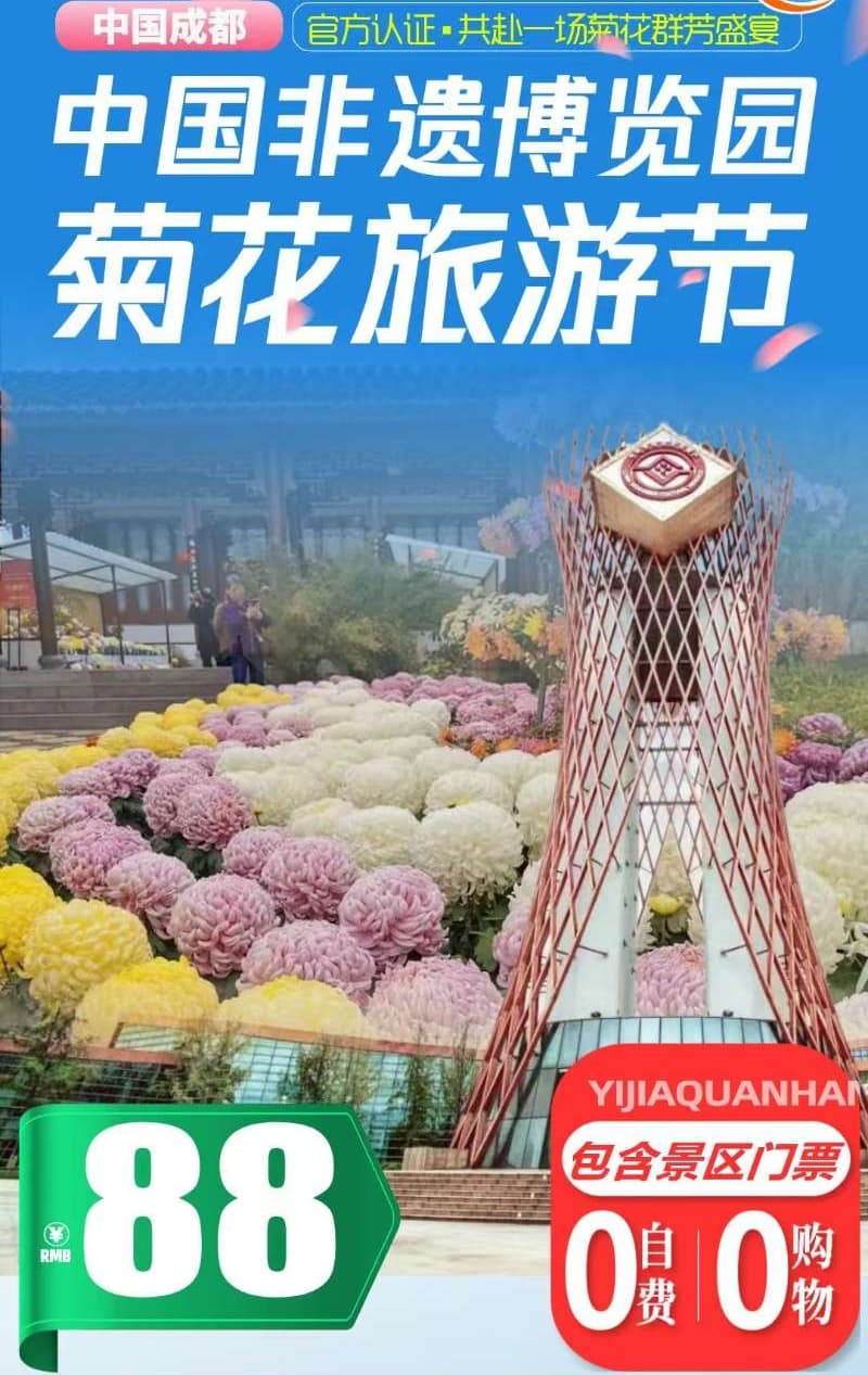 【立戰國旅】10.3/10.6非遺博覽園菊花展秋日花海一日游(純玩一日游)